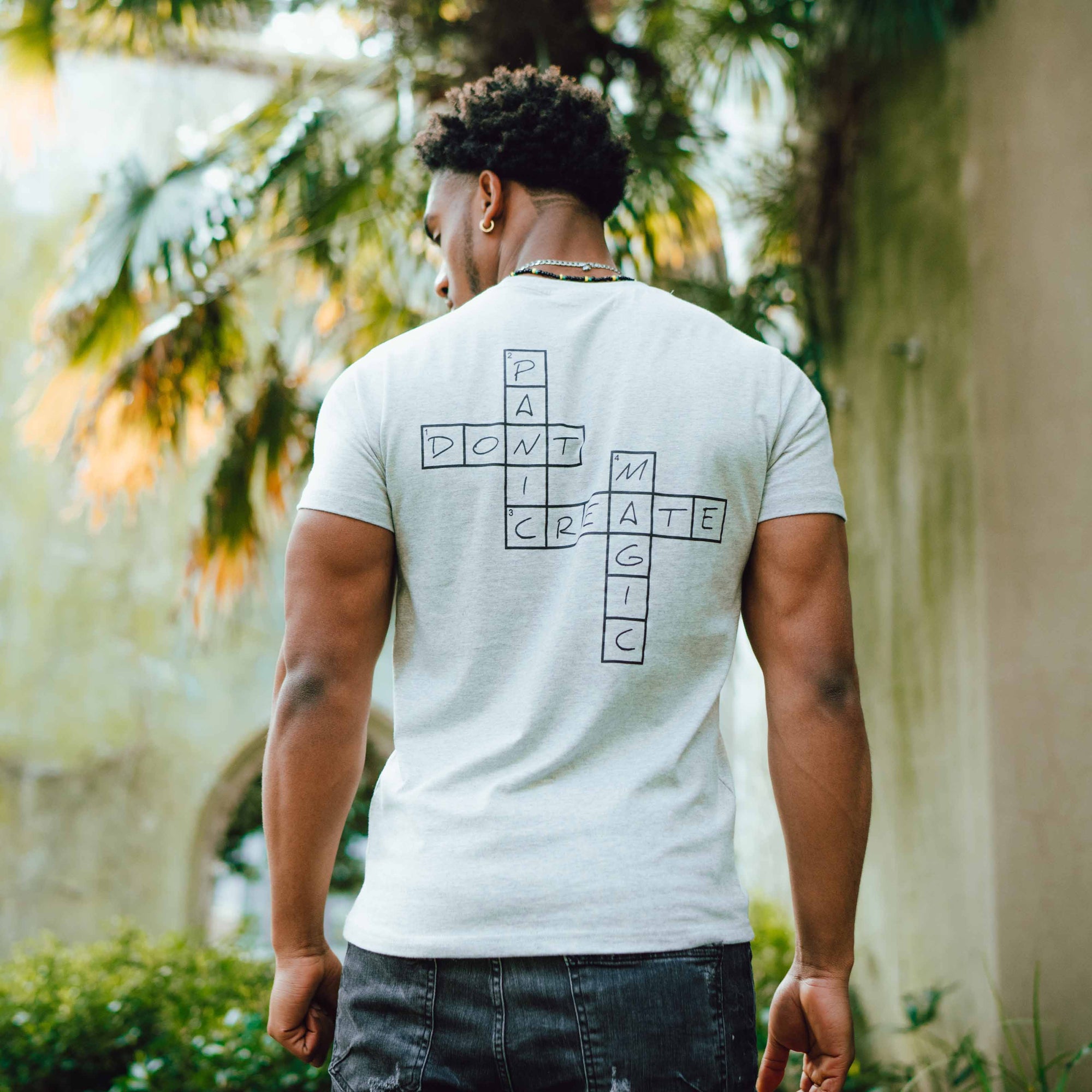From a young age, Kershall Duhaney, CEO of Dont Panic Clothing, suffered from a language processing disorder – dyslexia, which affected his ability to read, write, and spell. The disorder makes it hard for Kershall to recognise familiar words and means spelling words he knows may take a lot of time. Whilst commuting to London, Kershall would see the same older man doing his newspaper crossword. Completing a crossword could not come naturally to him, so he would use his imagination to create new words that worked best for him to fill out the gaps.